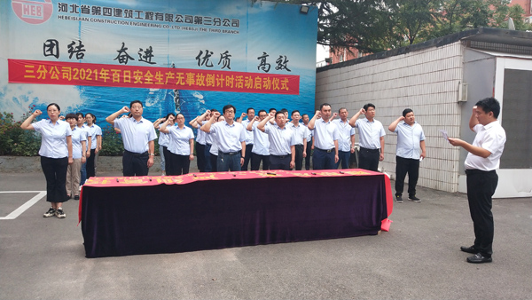 918日上午,三分公司组织机关全体职工在分公司院内举行了第十八次“百日安全生产无事故倒计时”活动启动仪式,公司经理李书伟带领职工进行安全宣誓,随后大家在印有“履职尽责,严细管控”活动主题的条幅上签名各项目部也相继开展了倒计时活动启动仪式