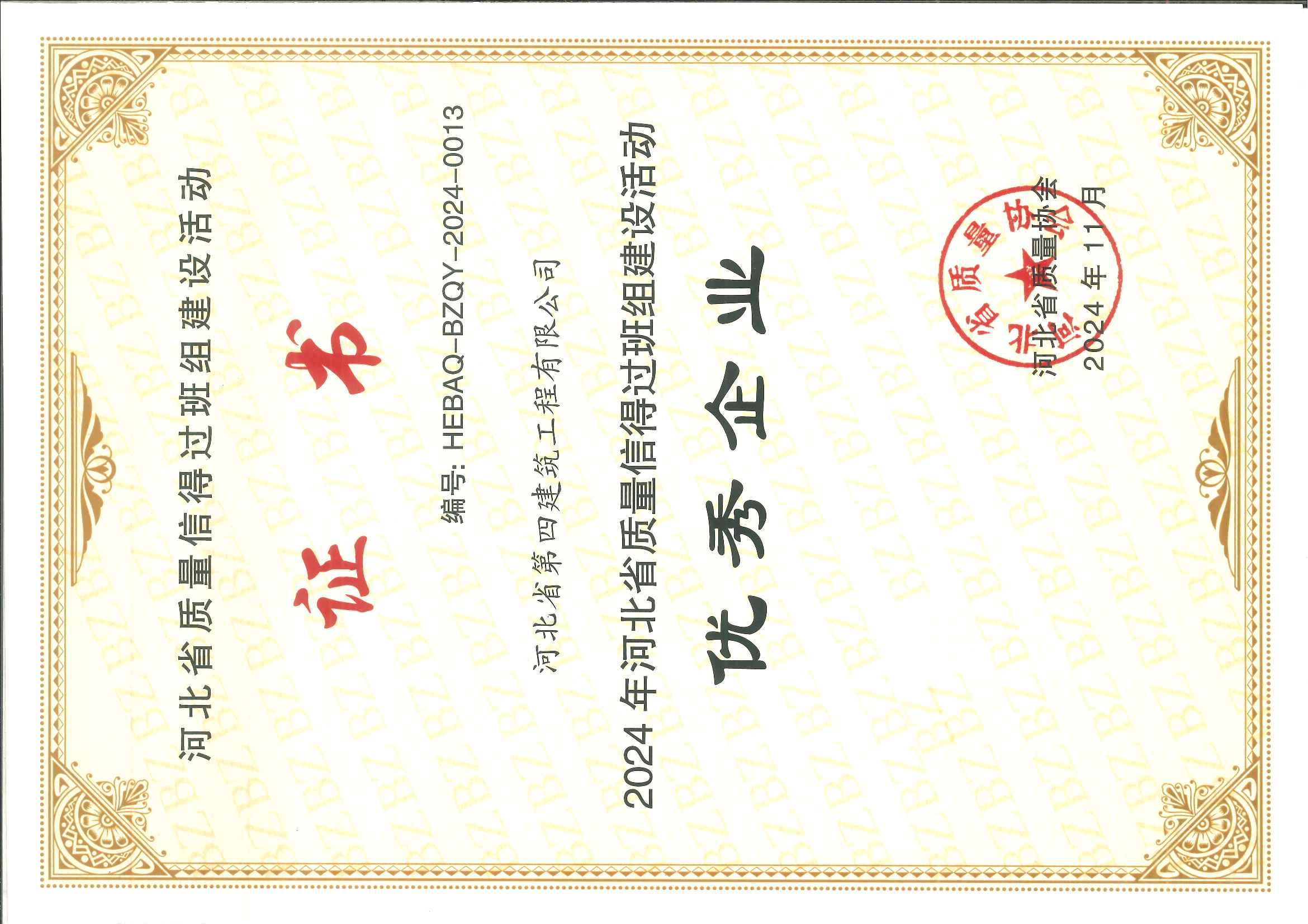 河北四建:2024年河北省质量管理小组活动优秀企业